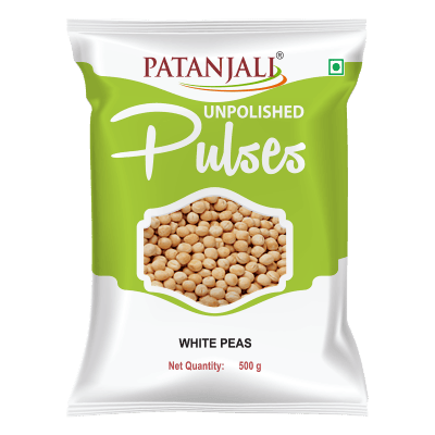 Patanjali Unpolished White Peas are whole white peas with the outer layer intact, offering higher natural fiber and nutrients and a wholesome texture, ideal for healthy traditional cooking.