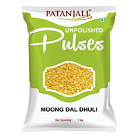 Key Ingredients Moong Dal Dhuli, Key Benefits, Safety Information Store in a cool & dry place. Keep away from direct sunlight. After opening transfer the content in an airtight container.Expiry: Use within 09 months from the date of manufacturing., Technical Information Processed & Packed By:: Patanjali Foods Ltd. Country of Origin : India Item Weight : 1 kg Legal Disclaimer : Actual product packaging and materials may contain more and different information than what is shown on our app or website. We recommend that you do not rely solely on the information presented here and that you always read labels, warnings, and directions before using or consuming a product., Direction for Use Wash dal a few times until water runs clear. Add water to the pot or pressure cooker along with dal and cook on a medium heat for 2 whistles.