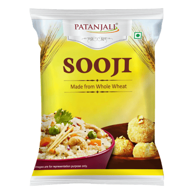 Patanjali Sooji is a source of protein and dietary fibre. With utmost hygiene and care, Patanjali Sooji is processed to give you upto the mark of quality and taste.Patanjali sooji is processed in the state of manufacturing plant to ensure proper texture and a longer shelf life. Sooji (or Semolina) is a flour made from durum wheat. It is a versatile ingredient that can be used in a variety of dishes, including upma, idli, dosa, and halwa. Patanjali Sooji has a coarse texture and a pale-yellow colour, which makes it ideal for creating dishes with a unique texture and appearance. Patanjali Sooji is rich in carbohydrate, fiber, and essential nutrients. Its versatility and nutritional benefits make it a healthy addition to any diet.