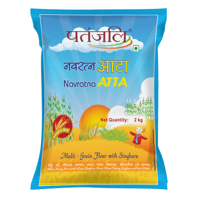 Key Ingredients Wheat (50.4%), Barley (9.52%), Amaranth (9.52%), Water Caltrop (9.52%), Gram (4.76%), Sorghum (4.76%), Soybean (4.76%), Maize (4.76%), Pearl Millet (2%), Key Benefits Make wholesome chapatis, rotis or phulkas (traditional Indian bread), pooris, paranthas, biscuits and halwas., Safety Information Store in a cool & dry place.Keep away from direct sunlight.After opening transfer the content in airtight container.Use before 6 months from the date of manufacturing., Direction for Use Mix 1 cup or 120g Patanjali Navratna Atta with warm water and make a consistent dough. Let it rest for 20-30 minutes. Form dough balls, flatten them and heat on tawa. 1 cup of atta is sufficient to make 5 standard chapattis.