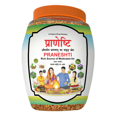 Divya Praneshti (Hawan Samagri) is a rich source of medicated air, and collection of ayurvedic herbs. These herbs have antibacterial, antiviral and have other medicinal properties. When burnt, their smoke clears toxins and harmful micro-organisms from your environment.