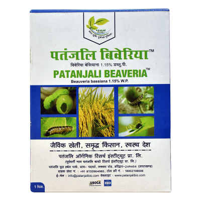 Key Ingredients Beauveria bassiana (Spores & Nutrient Medium Residues)Spore count (CFU)MoistureCarrier (Talc), Key Benefits It controls fruit incisor, stem incisor, DBM, white ant and aphid., Safety Information Use before 12 months from the date of mfg., Technical Information Manufacturer: Patanjali Organic Research Institute Country of Origin: India Item Weight: 1 kg Legal Disclaimer: Actual product packaging and materials may contain more and different information than what is shown on our app or website. We recommend that you do not rely solely on the information presented here and that you always read labels, warnings, and directions before using or consuming a product., Additional Information Manufacturer: Patanjali Organic Research Institute Patanjali Food & Herbal Park, Vill.-Padartha, Laksar Road, Haridwar-249404, Uttarakhand, India