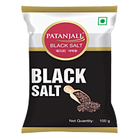 Patanjali Kala Namak (Black Salt) is a natural rock salt with a distinctive tangy flavor, often used in Indian cooking and traditional remedies for digestion and electrolyte balance.