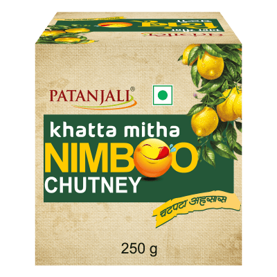 Patanjali Khatta Mitha Nimboo Chutney is a tangy and sweet lemon-based chutney that combines fresh lemons with mild spices and sweetness, perfect as a dip, spread, or accompaniment for snacks and meals.